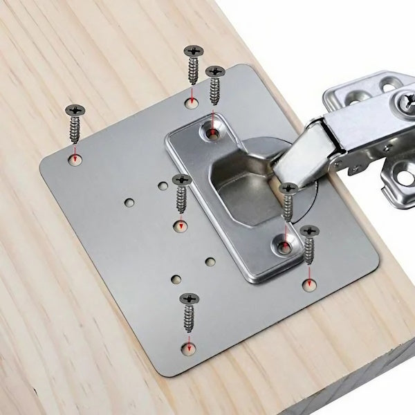 Обновите вашу мебель с помощью надежной пластины из нержавейки. В отличие от попыток заклеить ДСП, наша пластина создает новую прочную опору для петли, предотвращая повторные поломки и экономя ваш бюджет на покупку шкафов.