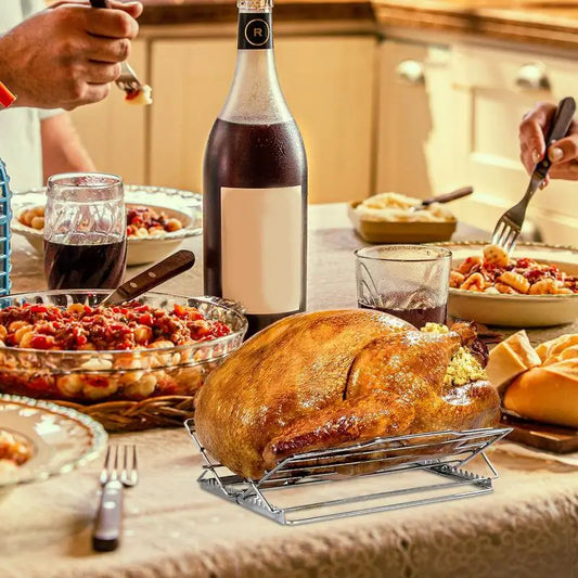 Chicken Roasting Rack Adjustable V-Shaped Turkey Tray Stainless Steel Roaster Rack Turkey Stand Kitchen Gadgets for Baking