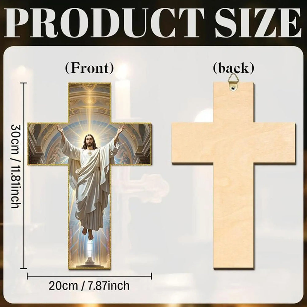Drewniany krzyż 30 cm wysokości 2D płaski Jezus Chrześcijanin Wierzący Rodzina Dekoracja Kościelna Impreza Kolorowa Tablica Przenośny Wisiorek Zdjęcie Prop